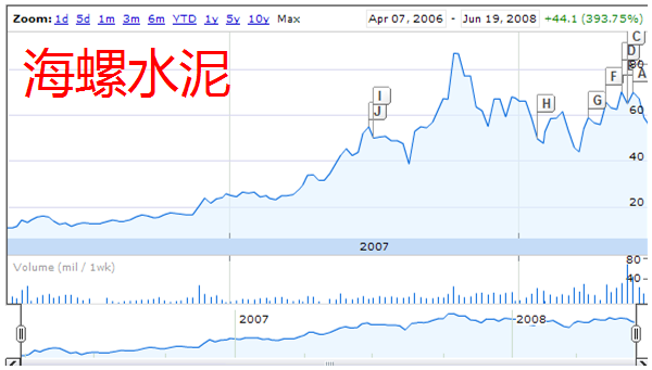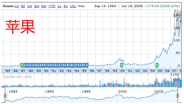 股票抵抗通货膨胀的能力分析 Jun 18, 2008 • tansm Share on: 海螺水泥 微软公司 苹果 IBM公司 Google SUN 这么多的图表,你看出来什么了吗? 我看的结果是: 好的方面:你如果有足够的眼光,在一个公司刚上市时就看到他光明的前景,那么你赚了。 不好的方面:如果你的眼光和其他人一样迟钝,在所有人已经知道他是个好公司时再买入,那么股票再好你还是一样的亏。 如果你再仔细看,你还会发现: 业绩的增长终究还是推动他股票价格增长的原动力。 再好的公司,在经历了一轮疯狂陡峭的上涨之后,基本上没有可能再升值了,最好出手。 <Previous Post空中投影在汽车上的应用(发明畅想) >Next Post哪都不靠