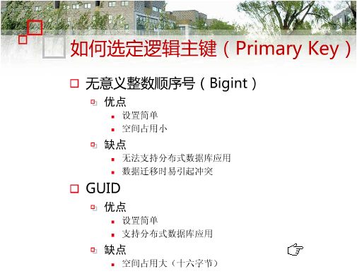 我就不废话int32和guid主键的优缺点了,这是他的PPT说明。